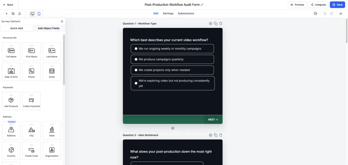 In addition, the client wants to create a quiz with different types of results.